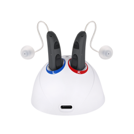 Rechargable 16 Channels RIC Programmable Bluetooth Music and Phone Streaming Primo DR803 Lithium Rechargeable Hearing Aids PAIR (LEFT AND RIGHT) in WHITE & FREE 1 YR Extended Warranty